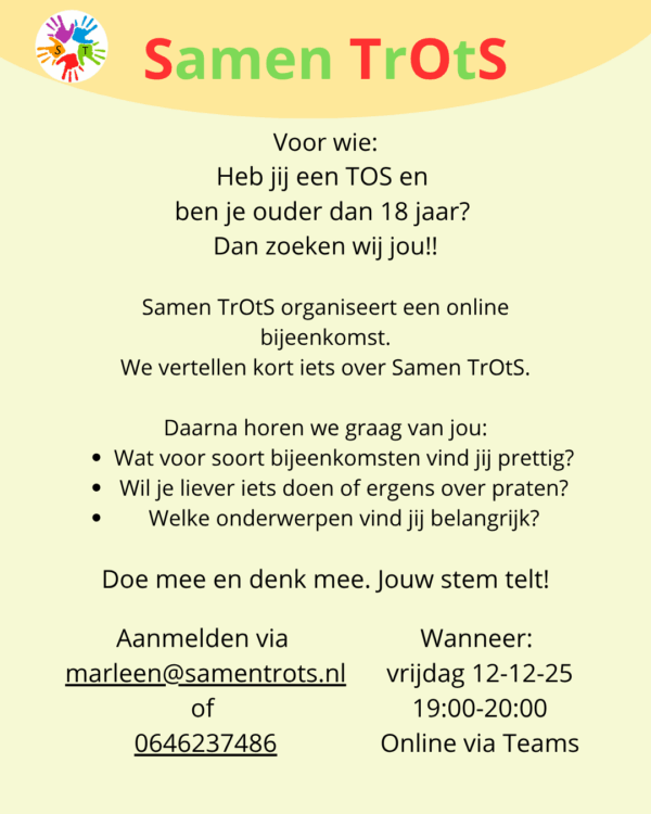Waardoor ik op de hoogte blijf van de nieuwste activiteiten van Samen TrOtS en het nieuws van uit de TOS wereld.