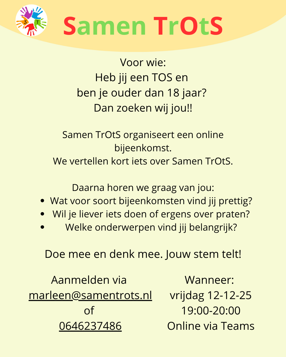 Voor vragen en aanmelden mail Marleen