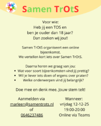Samen TrOtS organiseert een online bijeenkomst. We vertellen kort iets over Samen TrOtS.